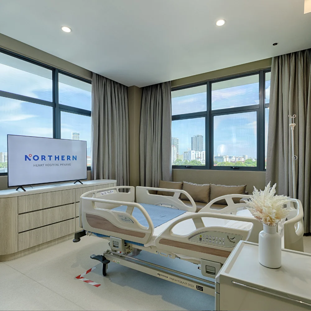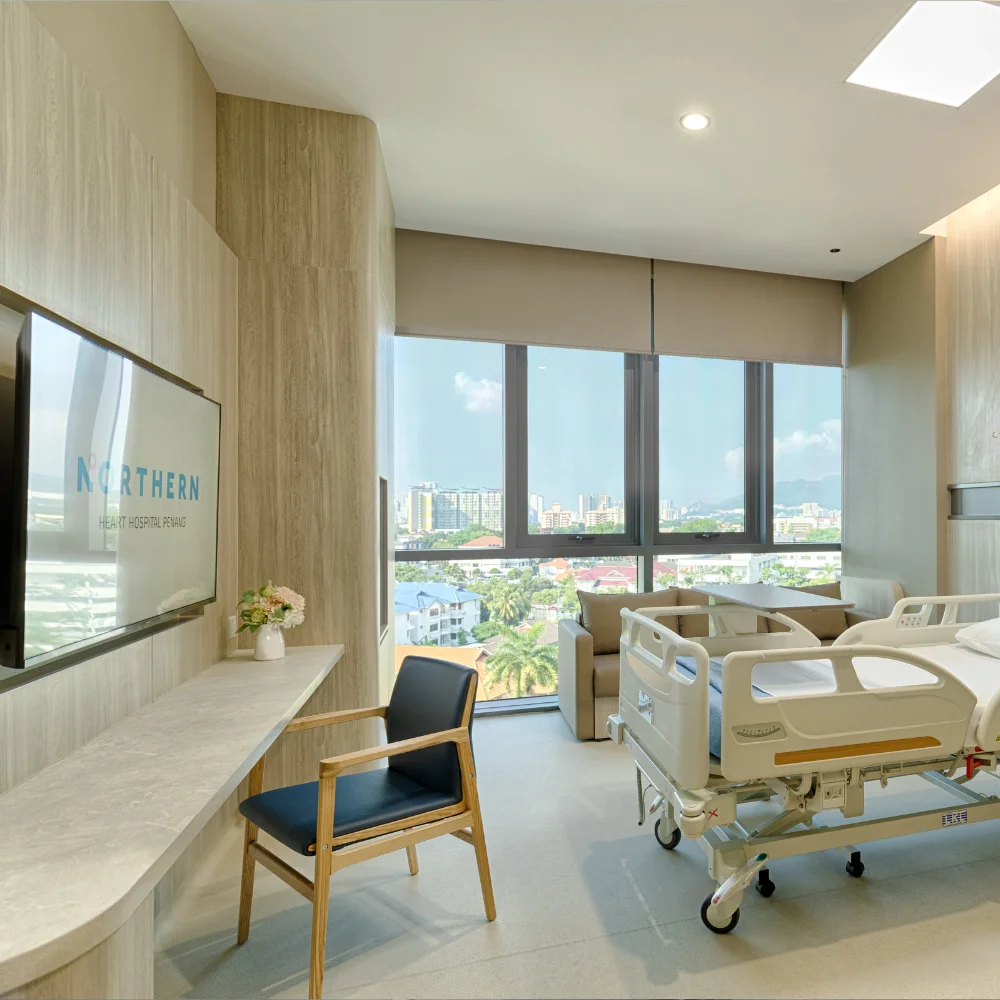 Northern Heart Hospital menyediakan beberapa pilihan kamar rawat inap, dari kamar dua tempat tidur hingga suite yang lebih luas dan eksklusif. Tarif di bawah ini adalah estimasi dan dapat berubah mengikut kebijakan rumah sakit.
